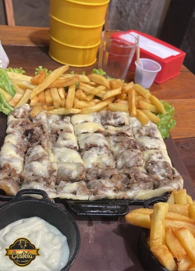 Produzida artesanalmente com carnes selecionadas, a costela é desossada, desfiada manualmente, limpa de cartilagens e excesso de gordura, e temperada com um blend especial que valoriza o sabor natural. O toque final fica por conta do queijo mussarela derretido, tornando o prato ainda mais irresistível.